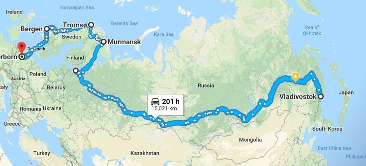 Now (9/2018) I have permission from Anne to go on my “retirement” ride for ~three month April-July 2020 flying the bike to Korea, taking the ferry to Vladivostok and riding the Transiberian Highway to St Petersburg and on to Murmansk, Nordkapp, Tromsoe, Bergen, Hamburg and my hometown Paderborn in Germany.